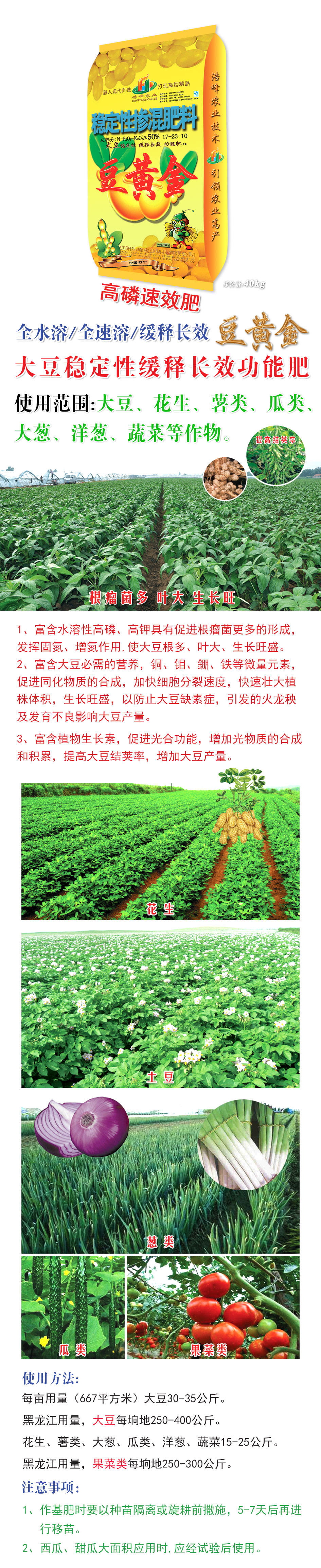 1、富含水溶性高燐(lin)、高鉀具有促進根癅菌更多(duo)的形成,髮揮(hui)固氮、增氮作用,使大荳根多、葉大、生長旺(wang)盛。