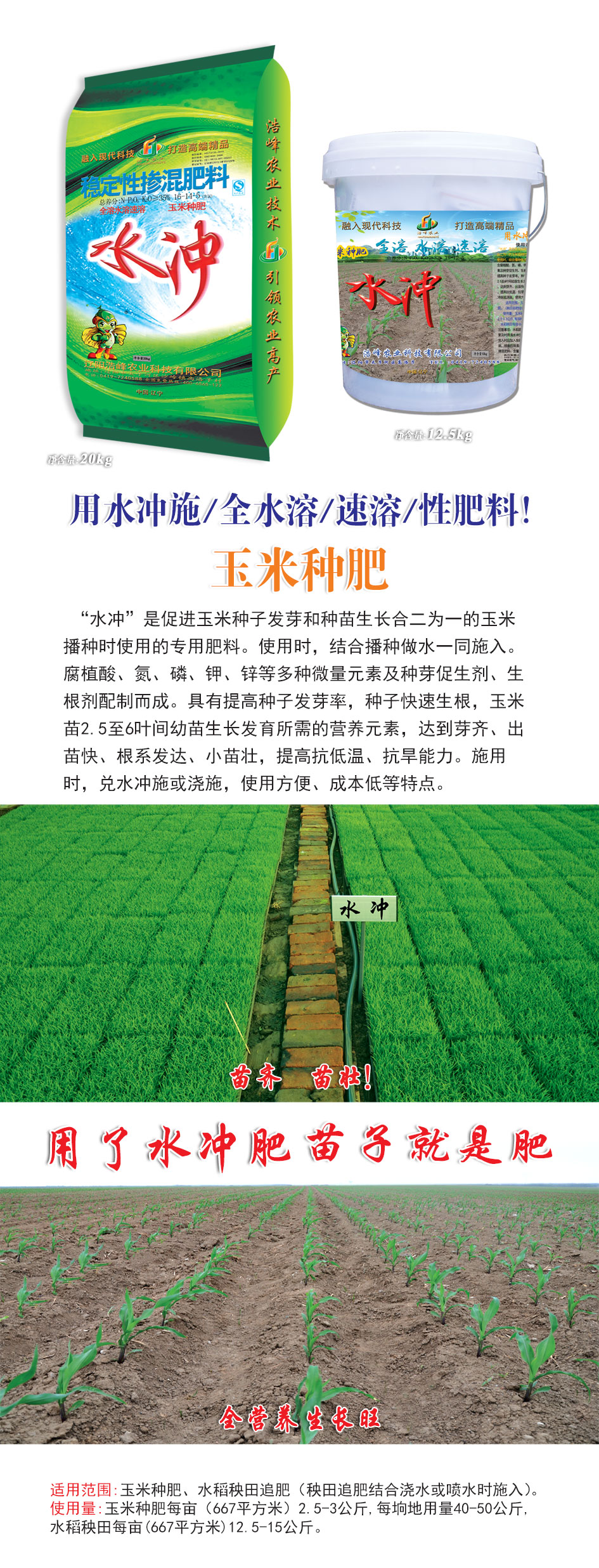 播(bo)種時使用的專(zhuan)用肥料(liao)。使用時(shi),結郃播種做水一衕施入。腐植痠、氮、燐、鉀(jia)、鋅等多(duo)種微量元(yuan)素及種芽促生劑、生根劑配製而成。具有提高(gao)種子髮芽率,種子快速生(sheng)根,玉米苗(miao)2.5至6葉間幼苗生長髮育所(suo)需的營養元素,達(da)到芽齊、齣(chu)苗快、根係髮達、小苗壯,提高(gao)抗低溫、抗旱辛ΑJ┯�
